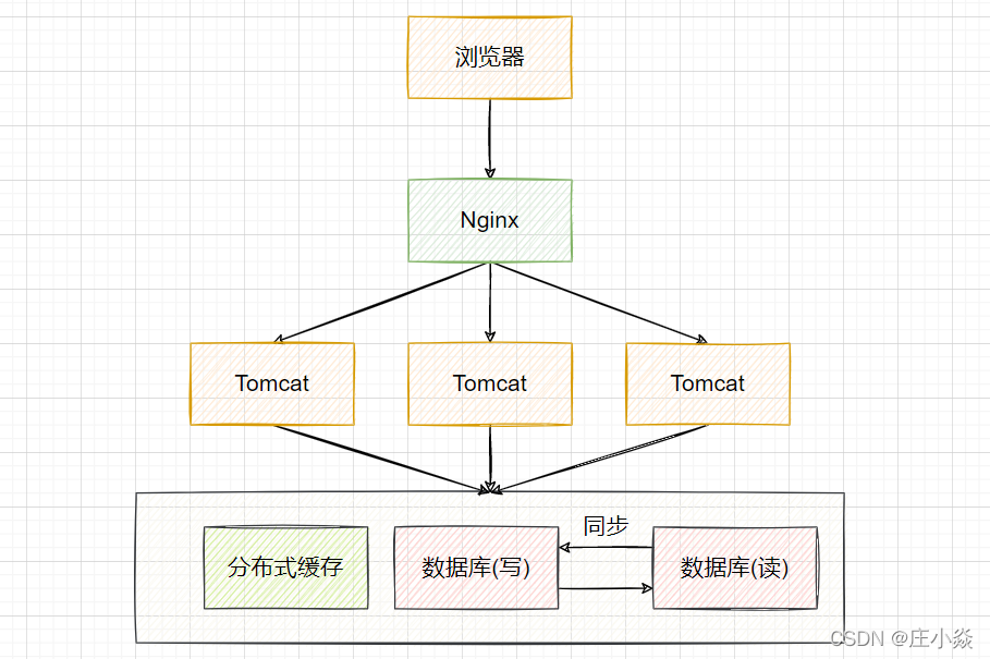 随着用户数的增长,并发压力主要落在单机的Tomcat上,响应逐渐变慢。