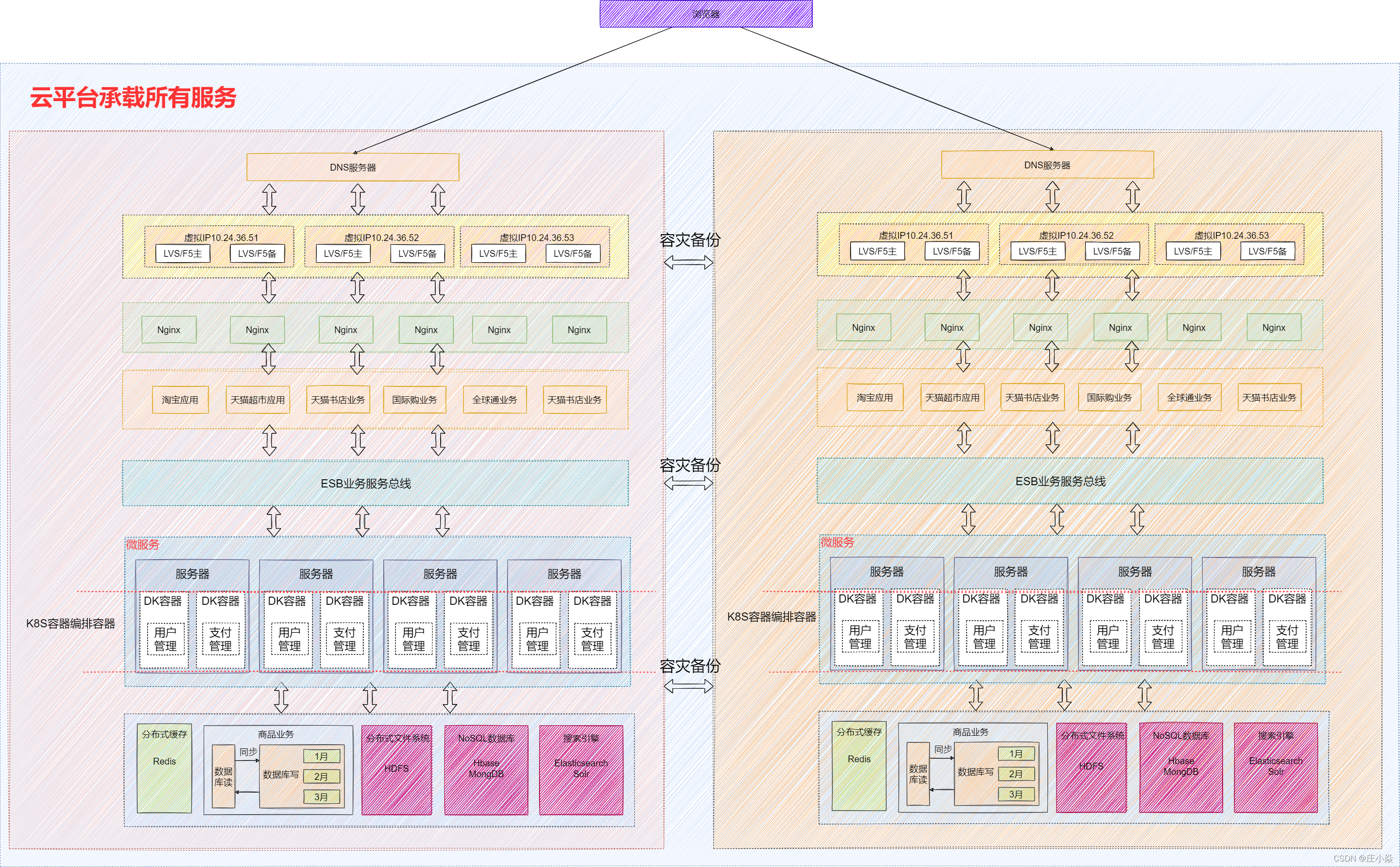 多活数据中心设计:若系统需要极高的高可用,应考虑在多地实施数据中心进行多活,至少在一个机房断电的情况下系统依然可用;