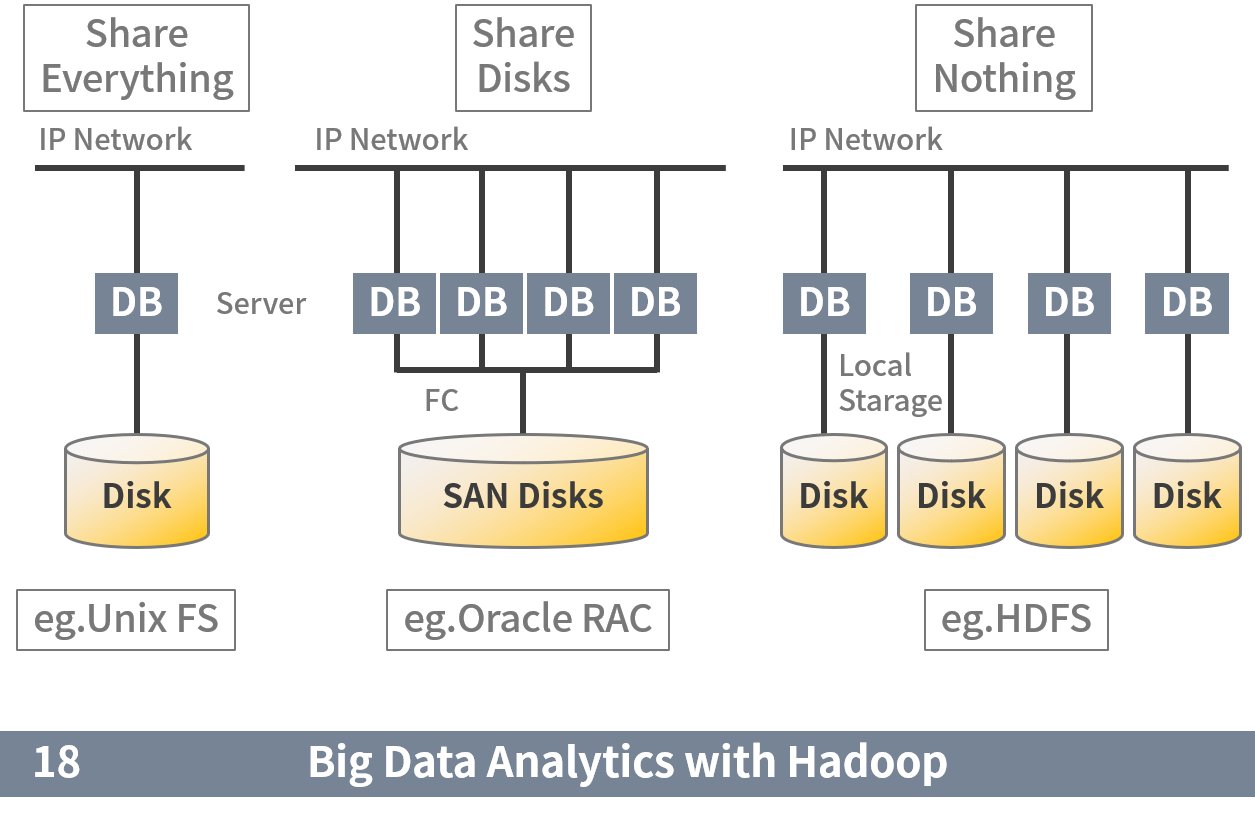 我们知道 Oracle、DB2 等商业数据库均为 OLTP 与 OLAP 融合数据库。而首先在分布式道路上寻求突破的是 OLAP 领域。在 2000 年伊始,以 Hadoop 为代表的大数据库技术凭借其“无共享”(share nothing)的技术体系,开始向以 Oracle 为代表的关系型数据库发起冲击。