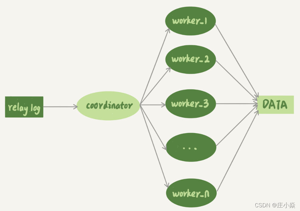4.2 并行复制策略但是,如果备库执行日志的速度持续低于主库生成日志的速度,那这个延迟就有可能成了小时级别。而且对于一个压力持续比较高的主库来说,备库很可能永远都追不上主库的节奏。这就涉及到备库并行复制能力。