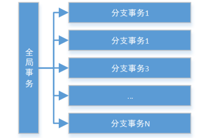 Seata的设计目标其一是对业务无侵入,因此从业务无侵入的2PC方案着手,在传统2PC的基础上演进,并解决 2PC方案面临的问题。 Seata把一个分布式事务理解成一个包含了若干分支事务的全局事务。全局事务的职责是协调其下管辖的分支事务达成一致,要么一起成功提交,要么一起失败回滚。此外,通常分支事务本身就是一个关系数据库的本地事务,下图是全局事务与分支事务的关系图: