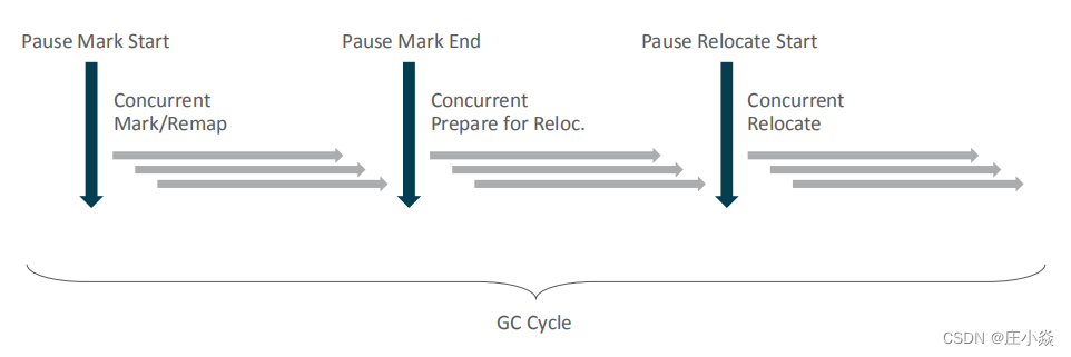 6.1 ZGC执行原理每个 GC 周期分为 6 个小阶段: