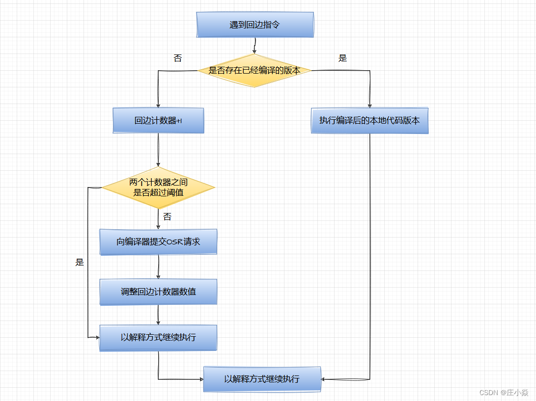 它的作用是统计一个方法中循环体代码执行的次数,在字节码中遇到控制流向后跳转的指令称为“回边”(Back Edge)。显然,建立回边计数器统计的目的就是为了触发 OSR 编译。