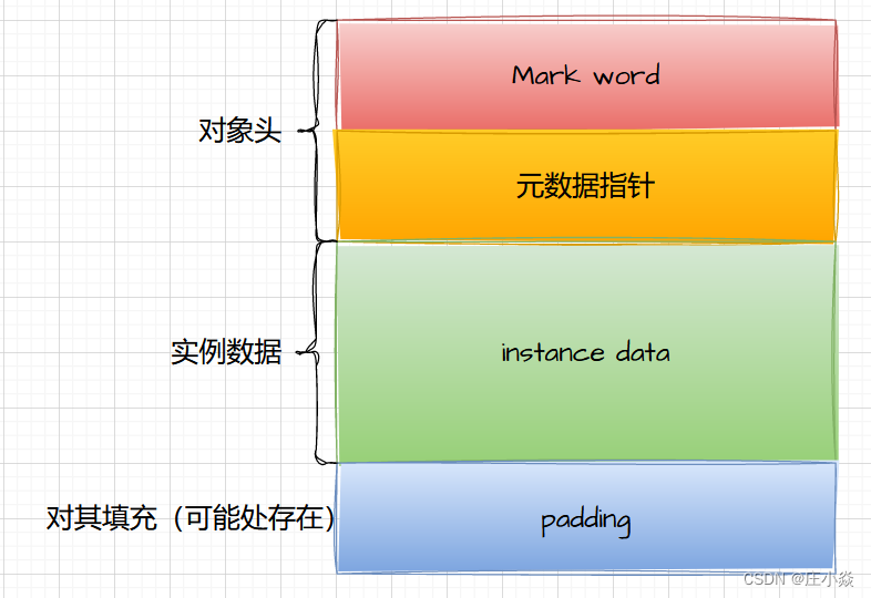 运行时元数据包括了:哈希值(HashCode)、GC 分代年龄、锁状态标志、线程持有的锁、偏向线程 ID、翩向时间戳