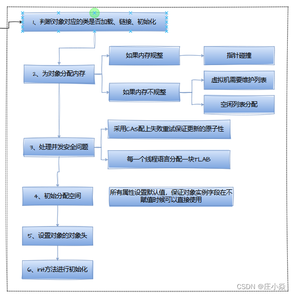 2.5 设置对象的对象头将对象的所属类(即类的元数据信息)、对象的 HashCode 和对象的 GC 信息、锁信息等数据存储在对象的对象头中。这个过程的具体设置方式取决于 JVM 实现。