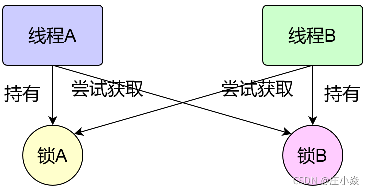 System.out.println(Thread.currentThread().getName()+"\t 自己持有"+lockB+"\t 尝试获得:"+lockA);