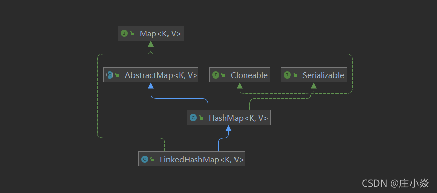 LinkedHashMap 内部有一个嵌套类 Entry,它继承自 HashMap 中的 Node 类,如下: