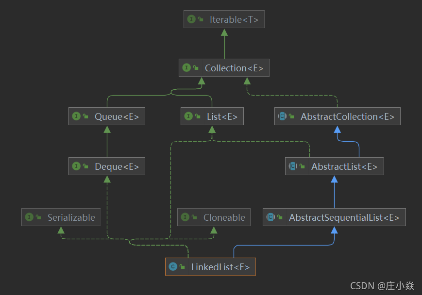 一、LinkList的定义LinkedList 是链表实现的线性表(双链表),元素有序且可以重复。