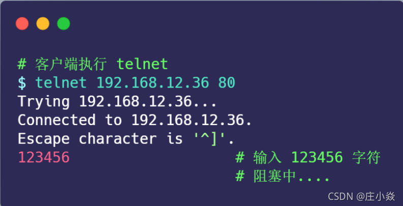 - 为什么客户端 telnet 输入 123456 字符后,过了好长一段时间,telnet 才断开连接?