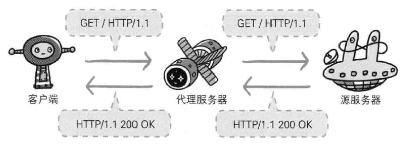 代理服务器的基本行为就是接收客户端发送的请求后转发给其他服务器。代理不改变请求URI,会直接发送给前方持有资源的目标服务器。持有资源实体的服务器被称为源服务器。从源服务器返回的响应经过代理服务器后再传给客户端。