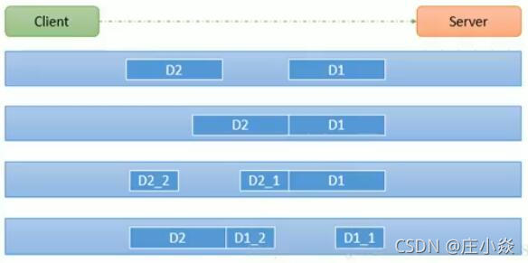 - 4)服务端分两次读取到了数据包,第一次读,取到了D1包的部分内容D1_1,第二次读取到了D1包的剩余部分内容D1_2和完整的D2包。
