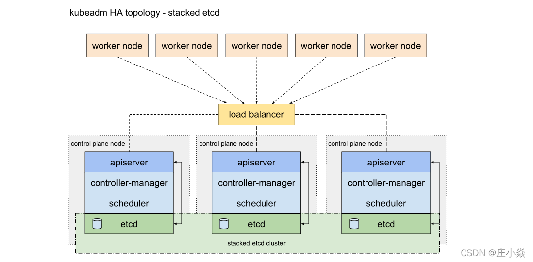 栈式 etcd 集群拓扑: