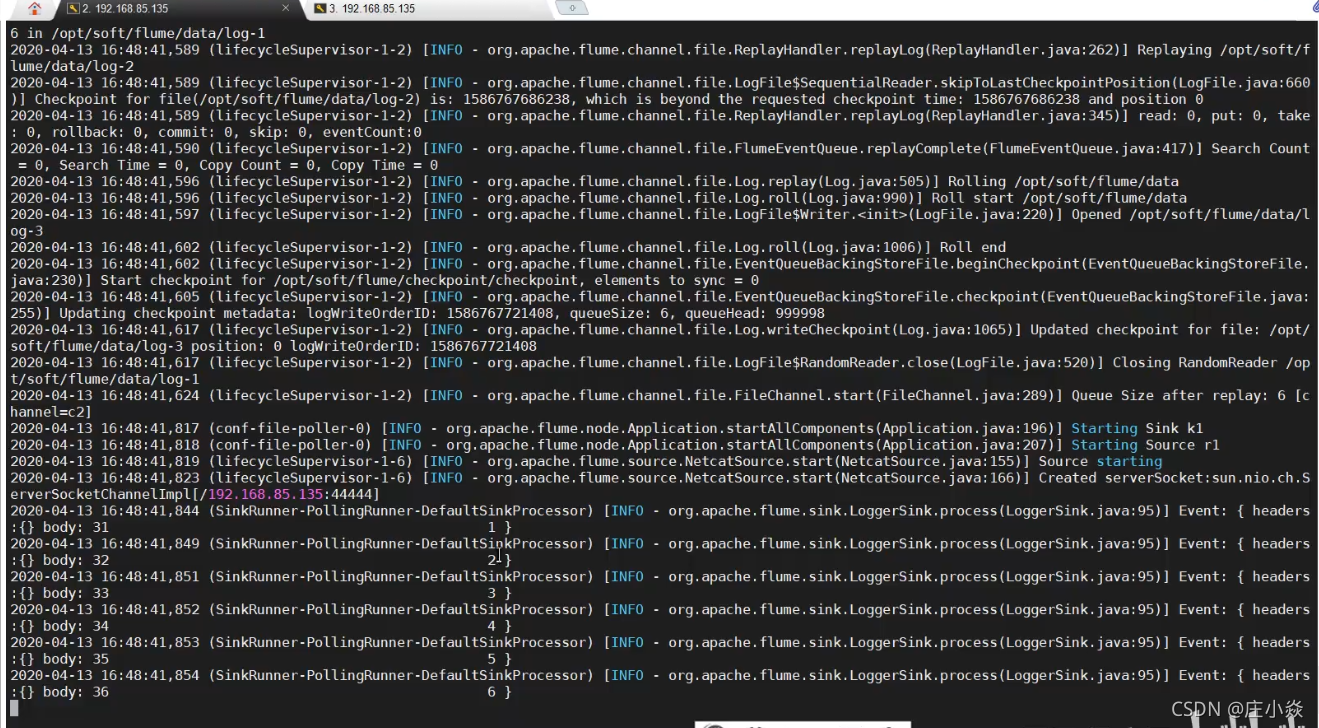 集群几点node1node2node3IP192.168.25.34192.168.25.35192.168.25.36flumec1 c2 c3c1 c2 c3s1 s2……Flume的部署配置为