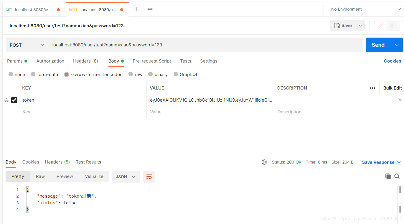 String token = "eyJ0eXAiOiJKV1QiLCJhbGciOiJIUzI1NiJ9.eyJleHAiOjE2Mjk2MDk1OTksInVzZXJuYW1lIjoiamlhbGVfeCJ9.iKLLIQU053qjI1uHGJ9fgiGMCGJS6Yzj1z30BpZmV8E";