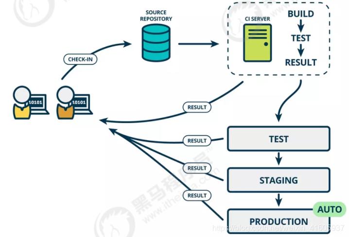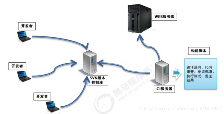- ·一个自动构建过程,从检出代码、编译构建、运行测试、结果记录、测试统计等都是自动完成的,无需人工干预。