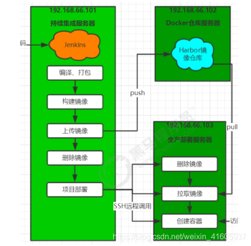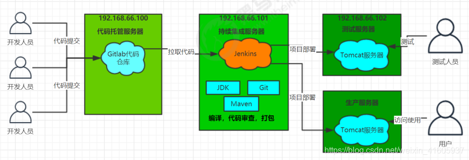- 3 )最后,Jenkins把生成的jar或war包分发到测试服务器或者生产服务器,测试人员或用户就可以访问应用。