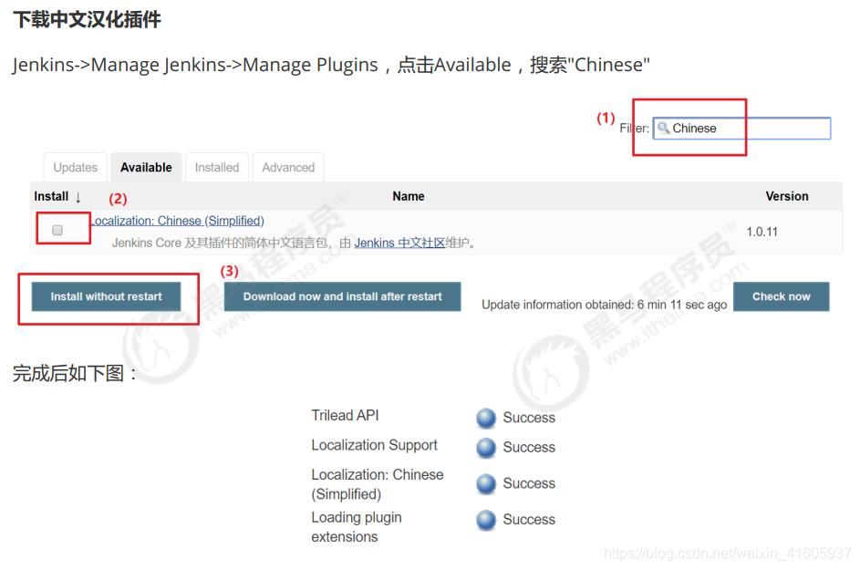 最后,Manage Plugins点击Advanced,把Update Site改为国内插件下载地址https://mirrors.tuna.tsinghua.edu.cn/jenkins/updates/update-center.json