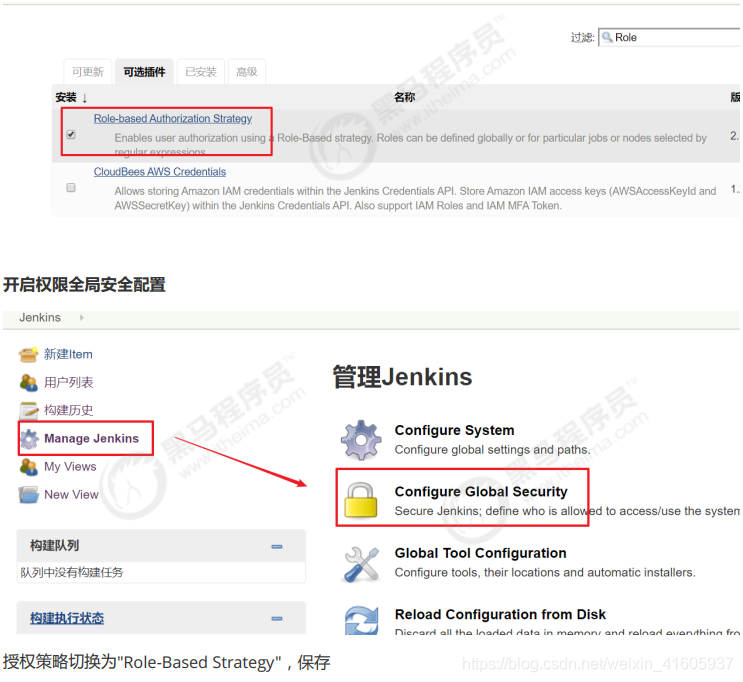 我们可以利用Role-based Authorization Strategy 插件来管理Jenkins用户权限,安装Role-based Authorization Strategy插件