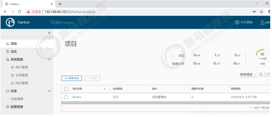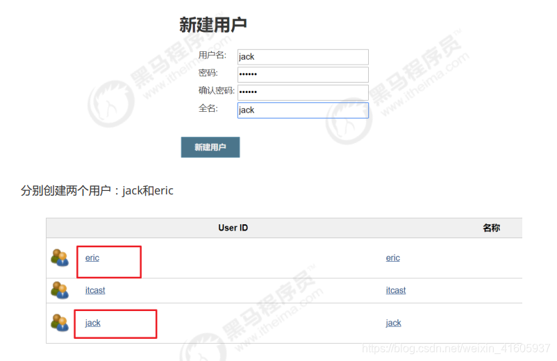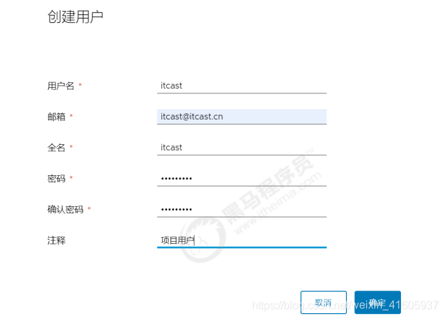 保存。创建项目测试权限:以itcast管理员账户创建两个项目,分别为itcast01和itheima01