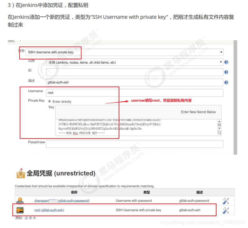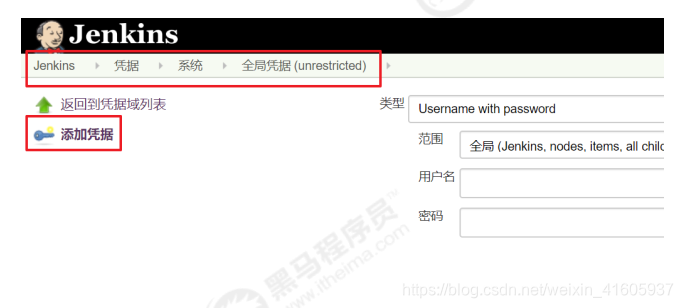 1)创建凭证:Jenkins->凭证->系统->全局凭证->添加凭证