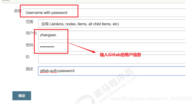 选择"Username with password",输入Gitlab的用户名和密码,点击"确定"。