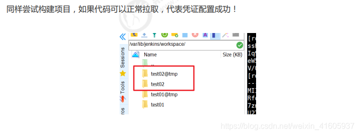 4)测试凭证是否可用:新建"test02"项目->源码管理->Git,这次要使用Gitlab的SSH连接,并且选择SSH凭证