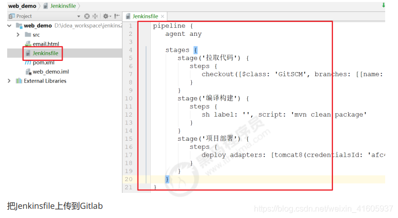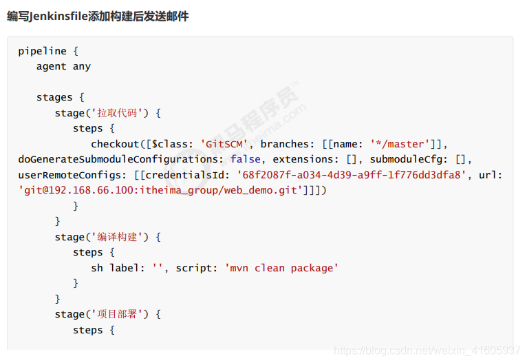 - 2)然后,Jenkins作为持续集成工具,使用Git工具到Git仓库拉取代码到集成服务器,再配合JDK,Maven等软件完成代码编译,代码测试与审查,测试,打包等工作,在这个过程中每一步出错,都重新再执行━次整个流程。
