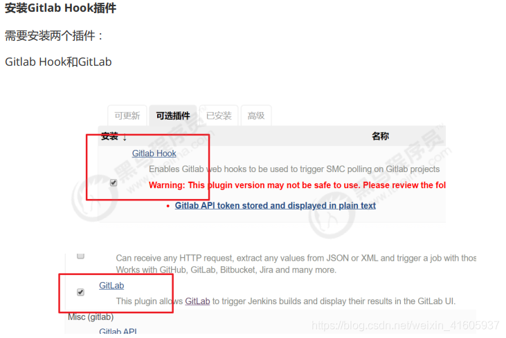 为了让Jenkins支持从Gitlab拉取源码,需要安装Git插件以及在CentOS7上安装Git工具。