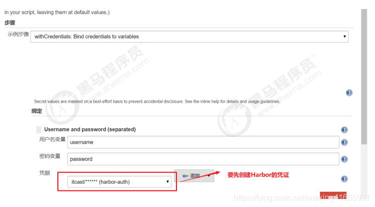 ${harbor_url}/${harbor_project_name}/${imageName}"2)使用凭证管理Harbor私服账户和密码