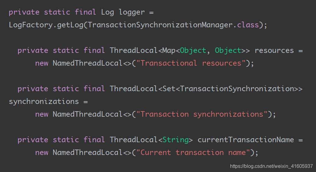 ThreadLocalThreadLocal的作用主要是做数据隔离,填充的数据只属于当前线程,变量的数据对别的线程而言是相对隔离的,在多线程环境下,如何防止自己的变量被其它线程篡改。Spring采用Threadlocal的方式,来保证单个线程中的数据库操作使用的是同一个数据库连接,同时,采用这种方式可以使业务层使用事务时不需要感知并管理connection对象,通过传播级别,巧妙地管理多个事务配置之间的切换,挂起和恢复。