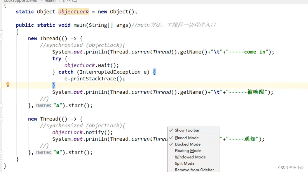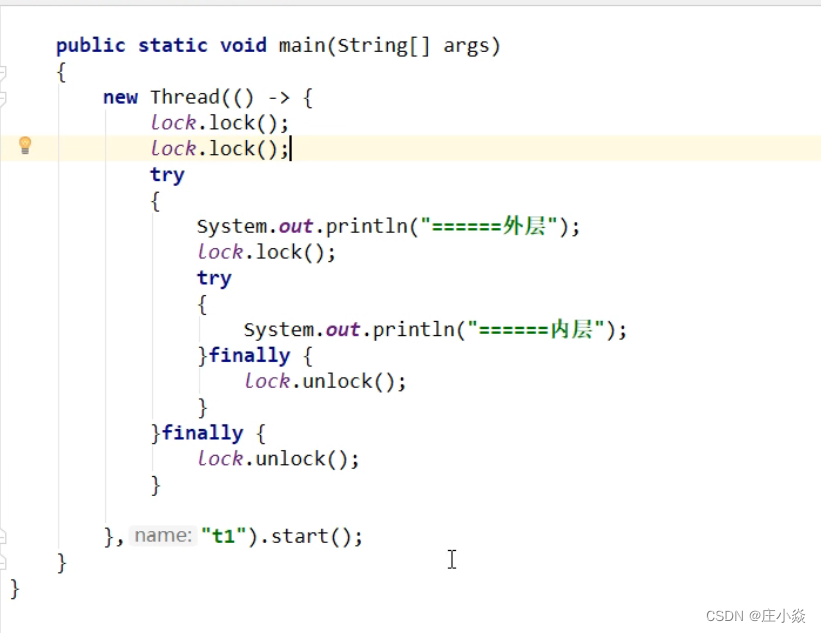 一、可重入锁(递归锁)可重入锁又名递归锁:是指在同一个线程在外层方法获取锁的时候,再进入该线程的内层方法会自动获取锁(前提,锁对象得是同一个对象),不会因为之前已经获取过还没释放而阻塞。Java中ReentrantLock和synchronized都是可重入锁,可重入锁的一个优点是可一定程度避免死锁。