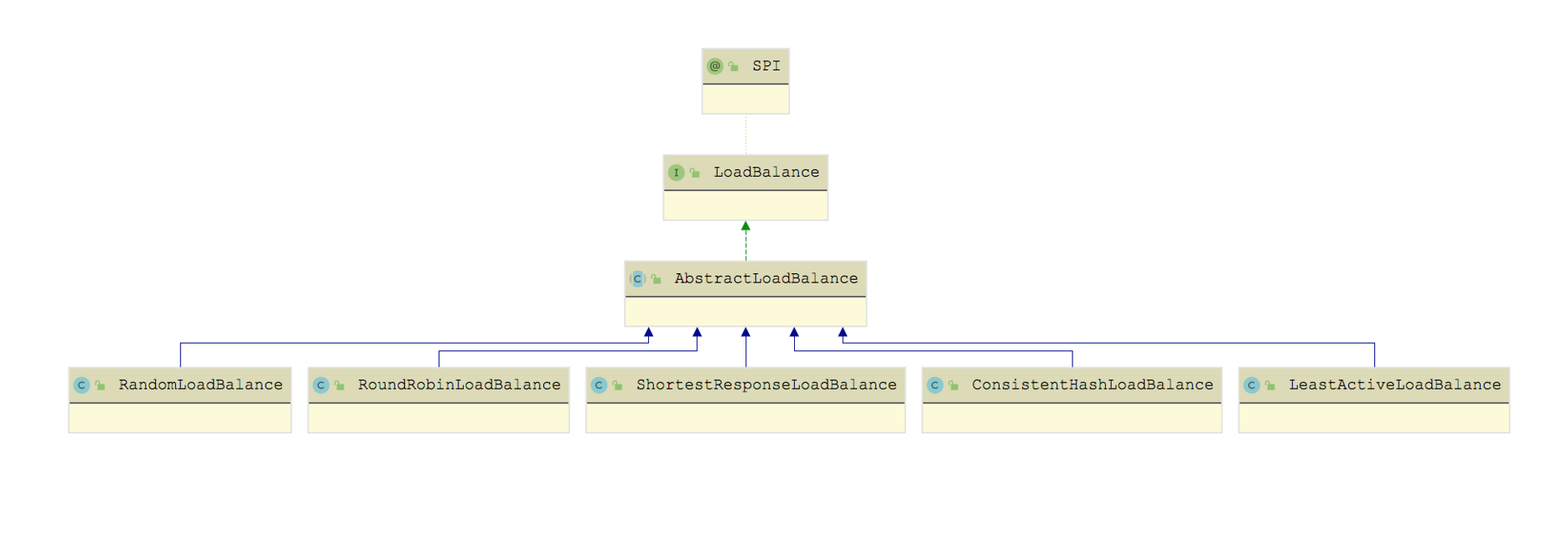 LoadBalance 是一个扩展接口,默认使用的扩展实现是 RandomLoadBalance,其定义如下所示,其中的 @Adaptive 注解参数为 loadbalance,即动态生成的适配器会按照 URL 中的 loadbalance 参数值选择扩展实现类。