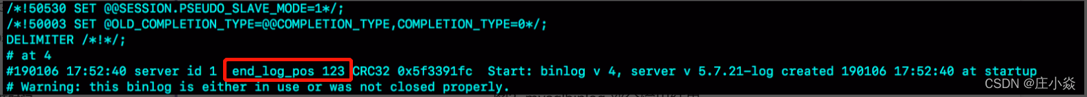 最后两个参数 MASTER_LOG_FILE 和 MASTER_LOG_POS 表示,要从主库的 master_log_name 文件的 master_log_pos 这个位置的日志继续同步。而这个位置就是我们所说的同步位点,也就是主库对应的文件名和日志偏移量。