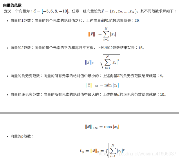 1.4 向量和矩阵的范数归纳(范数是一个度量的方式,用来展示在n维空间下的好坏。) 向量的范数
