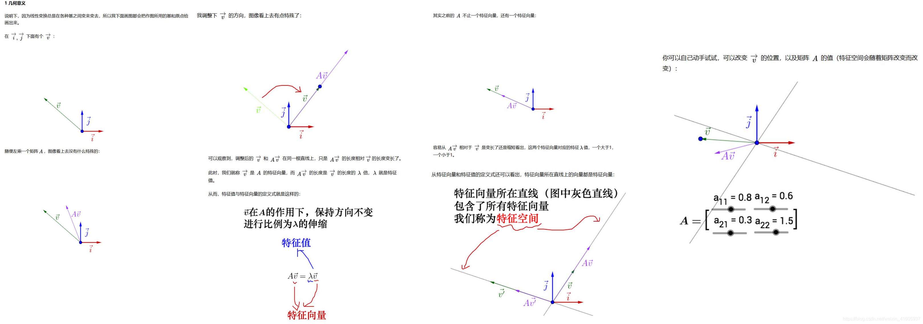 如何理解矩阵特征值:先给一个简短的回答,如果把矩阵看作是运动,对于运动而言,最重要的当然就是运动的速度和方向,那么(我后面会说明一下限制条件):·特征值就是运动的速度·特征向量就是运动的方向 既然运动最重要的两方面都被描述了,特征值、特征向量自然可以称为运动(即矩阵)的特征。注意,由于矩阵是数学概念,非常抽象,所以上面所谓的运动、运动的速度、运动的方向都是广义的,在现实不同的应用中有不同的指代。下面是详细的回答,我会先从几何上简单讲解下特征值、特征向量的定义指的是什么,然后再来解释为什么特征值、特征向量会是运动的速度和方向。
