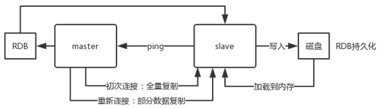 主从复制模式Redis 主从复制的核心原理:当启动一个 slave node 的时候,它会发送一个 PSYNC 命令给 master node。如果这是slave node 初次连接到 master node,那么会触发一次 full resynchronization 全量复制。此时 master 会启动一个后台线程,开始生成一份 RDB 快照文件,同时还会将从客户端 client 新收到的所有写命令缓存在内存中。RDB 文件生成完毕后, master会将这个 RDB 发送给 slave,slave 会先写入本地磁盘,然后再从本地磁盘加载到内存中,接着master会将内存中缓存的写命令发送到 slave,slave 也会同步这些数据。slave node 如果跟master node 有网络故障,断开了连接,会自动重连,连接之后 master node 仅会复制给 slave 部分缺少的数据。