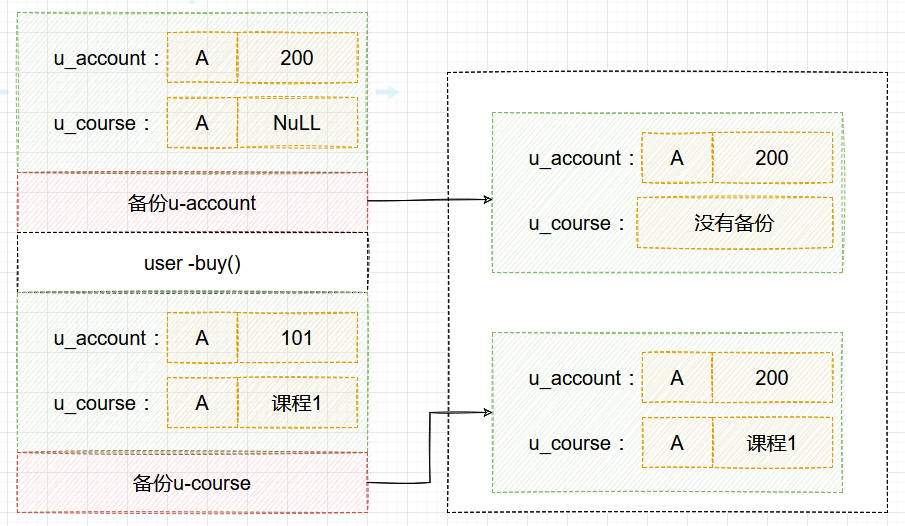 可以看到,用户 A 的数据状态是“账户余额没扣,但是用户课程表里面已经多了一门课”。如果后面用这个备份来恢复数据的话,用户 A 就发现,自己赚了。相反的如果备份表的顺序反过来,先备份用户课程表再备份账户余额表,那就出现的余额被扣了,但是的没有的相关的课程添加经进lia,用户的这个时候可能就生气,投诉了。