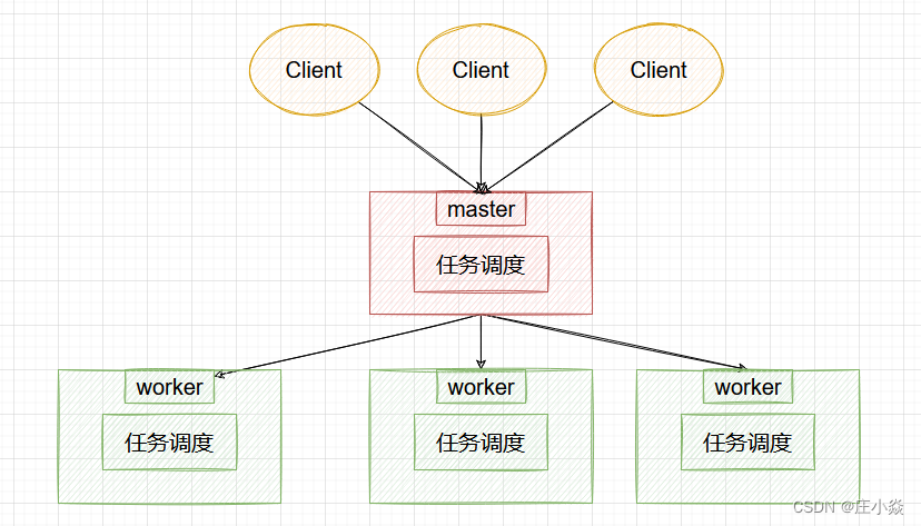 1.1 饿汉式单例设计模式 1.2 懒汉式单例设计模式 1.3 Double check单例设计模式 二、Master-Worker设计模式Master-Worker模式是一种常见的高并发模式,它的核心思想是任务的调度和执行分离,调度任务的角色为Master,执行任务的角色为Worker,Master负责接收、分配任务和合并(Merge)任务结果,Worker负责执行任务。Master-Worker模式是一种归并类型的模式。