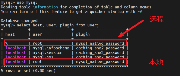 ## 可以看到root的plugin是caching_sha2_password,我们希望改成mysql_native_password