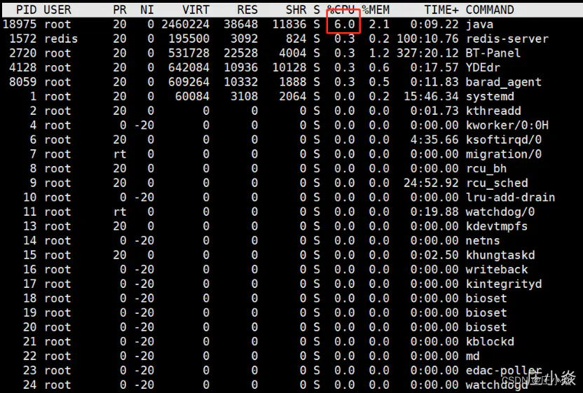 使用 top 命令排查生产上 CPU 和内存占比比较高的进程: