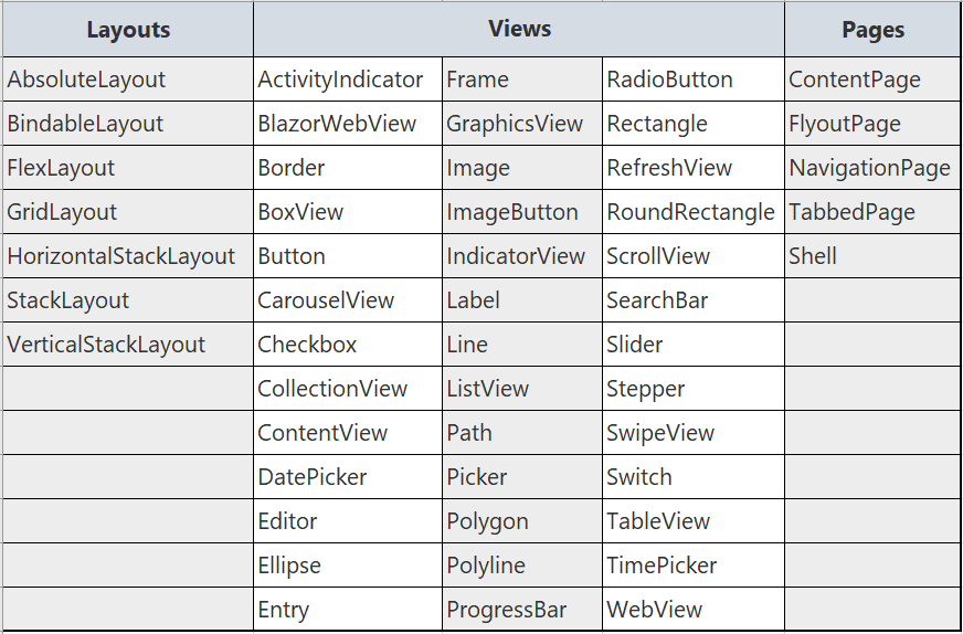 它与Xamarin.Forms相比如何?你可以得到Xamarin.Forms附带的所有UI控件,加上新的控件,如 BlazorWebView, Border, GraphicsView, MenuBar, Shadow, and Window.