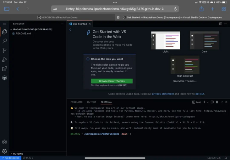 配置成功后,在浏览器就可以启动云端的 Visual Studio Code 环境