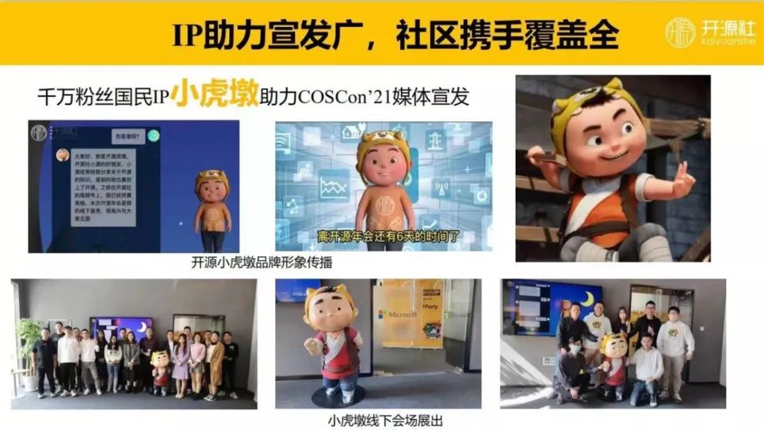 陈阳:做开源很有意思,你会跟各种各样的人产生交集。在疫情爆发的时候,开源社的大家做了小源机器人,我们用三天时间做了一个开源的抗疫知识库,放在了 GitHub 上。推出来这个聊天机器人之后,我们想他应该有一个形象,当时虎墩的IP正在形成,导演也特别理解和支持公益事业,他就把虎墩授权给我们开源社了,就有了开源小虎墩。在《小虎墩大英雄》里,是一个小孩的成长故事,历经千辛万苦成为一个真正的标识。从小源到开源小虎墩,这也是一个成长过程,技术一步一步累积,它的知识库也是大家一起来积累。