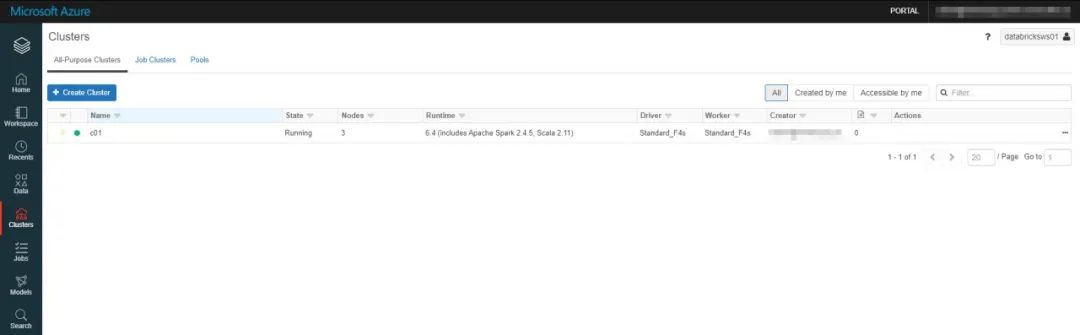 Azure Databricks的创建过程是:首先在Azure上创建一个Databricks实体,然后在此基础上在实体内部创建Workspace以及Cluster,再提交Job。每个Databricks资源都有唯一的ID和Endpoint与之对应,以便能够进行Restful API调用,集群通过Databricks门户创建即可。