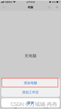 下载好后,打开应用,点右上角的+号,选择添加电脑