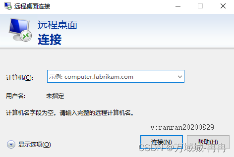 ps:远程桌面连接页面出来的另一种方法:同时按下win+R 键,然后输入mstsc,按下回车就出来了