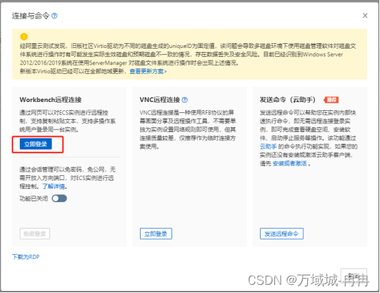 阿里云服务器(Windows)远程连接有两种方法,一种是直接在阿里云账号里的服务器控制台界面直接点击远程连接按钮连接;另外一种是在本地远程连接。下面会把两种方法都说下