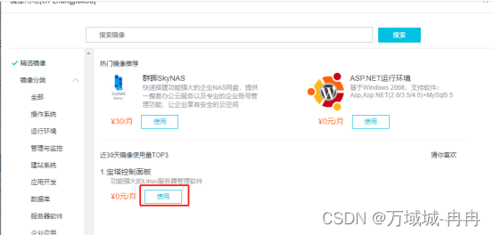 进入更换操作系统界面后,选择镜像市场,然后选择安装有宝塔的镜像