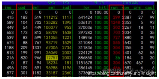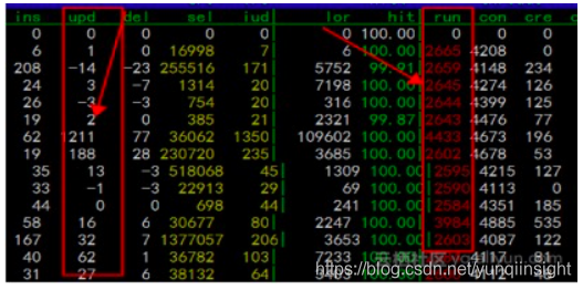 调整参数之前,可以看到RUN数量非常高,会导致数据库报警