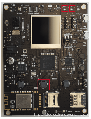 烧写完成后开发板会自动运行,此时可以看到LED开始按1s为间隔闪烁。按动板上的“M”按钮,LED2会切换输出。这里要指出,blink Demo主要为了演示GPIO的HAL层操作函数,并没有做按键去抖动工作,所以点按按钮时,可能会出现按一次LED2直接切换两次。也请大家在实际的代码设计中注意按键去抖能力的加入。到此,例程已成功完成运行。